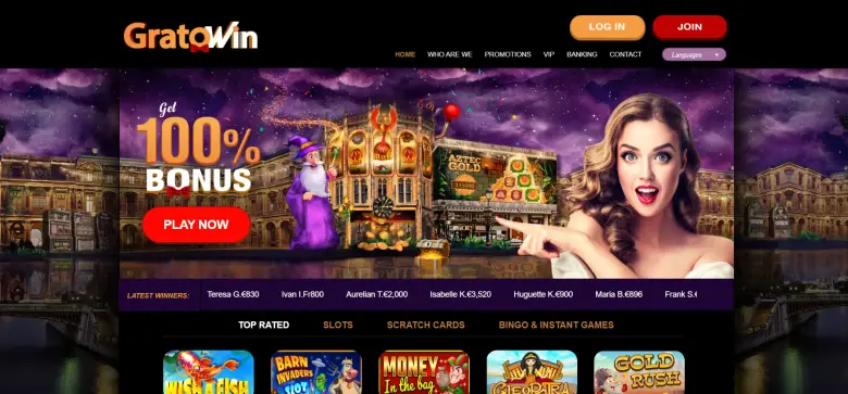 Comme la note du casino GratoWin est inférieure à 80, je vous recommande de consulter la liste des casinos avec une note plus élevée.