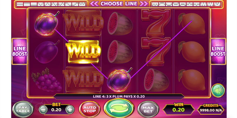 Il n'y a pas de jackpots, de bonus ou de tours de bonus dans cette machine à sous vidéo puisqu'il s'agit d'une machine à sous classique de casino de fruits. Cependant, cela ne diminue en rien les qualités uniques du jeu. De gros gains sont possibles grâce à Line Boost.