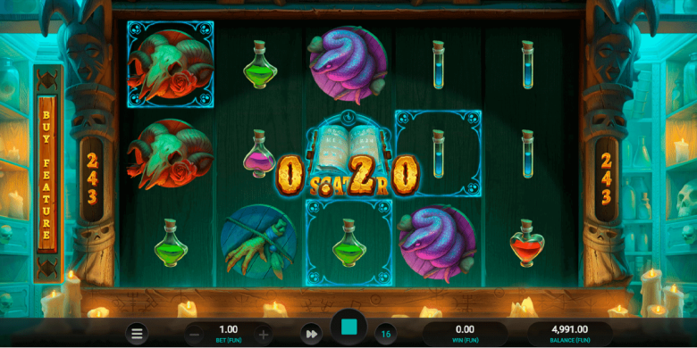 FSs. 3, 4 et 5 Livres de Sorts apportent respectivement 7, 10 et 15 FS. Chaque scatter supplémentaire donne +1 FS. Avant d'activer les tours de FSs, les rouleaux se transforment, augmentant le nombre de voies gagnantes à 1024. D'autres zones sont encadrées pendant les tours FSs.