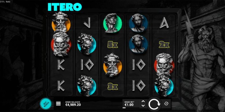 Le RTP de la démo de la machine à sous Itero est modifiable. En raison de la disponibilité de l'achat de bonus, il peut changer de manière significative. Et si le taux standard est de 96,18% (ce qui est la moyenne), il peut devenir plus faible après l'achat d'options. Ainsi, le taux le plus bas pourrait être de 88,33 %. En outre, la variance est extrêmement élevée, ce qui doit également être pris en compte lors des paris. La fréquence des succès est de 29%. Un point positif de la machine à sous Itero est la diversité de ses paris. Les parieurs peuvent facilement choisir la mise en fonction de leur budget. Le fournisseur propose de parier de 0,10 à 100 EUR par tour. Pour obtenir un gain, 3 à 5 éléments identiques doivent apparaître sur une ligne de paiement. Une table de paiement contient des éléments à haut et bas paiement. Le premier groupe est représenté par les statues des dieux romains :