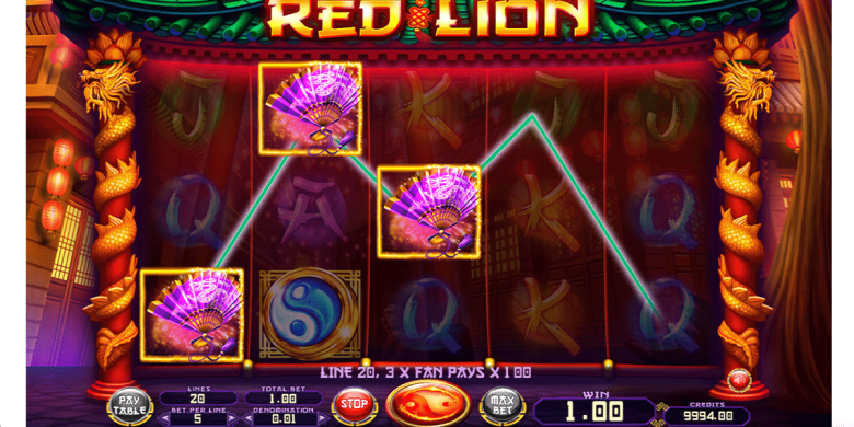 Les 100 premiers tours de la machine à sous Red Lion en mode démo
