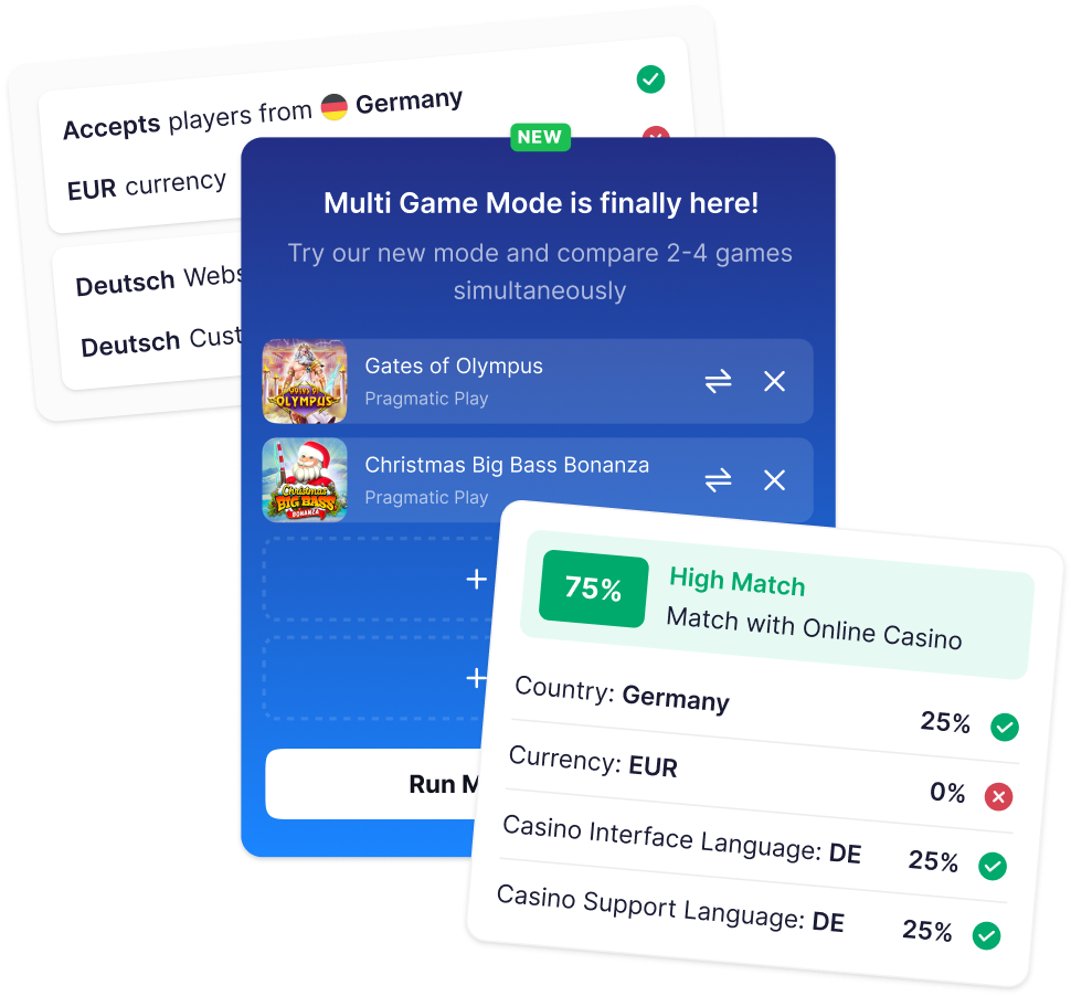 Nous avons ajouté des filtres avancés pour les jeux et les casinos afin d’aider les utilisateurs à affiner leurs recherches par fonctionnalités, bonus, fournisseurs, et plus encore.